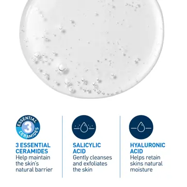 Cleanser, containing salicylic acid to aid with gently exfoliating the